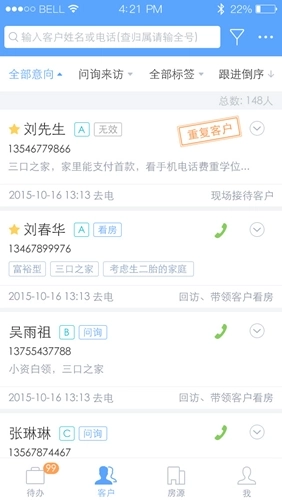 3、置业顾问可直接把通讯录联系人添加为自己的客户