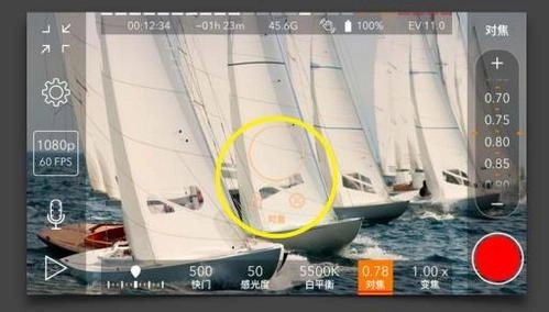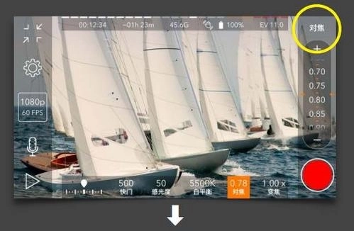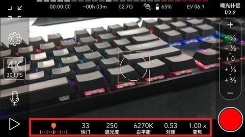 4、在下方一栏里,能够调整快门、感光度、白平衡、对焦、变焦等参数。