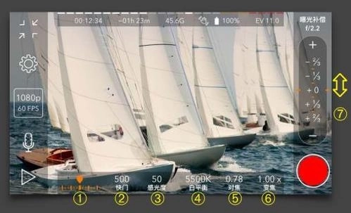 1、进入软件后,界面上会显示一系列专业的摄像参数,大家可按照下方的说明进行调节。