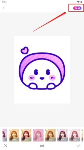 1、打开promovie应用,拍摄完照片后,点击顶部的图片美化功能;
