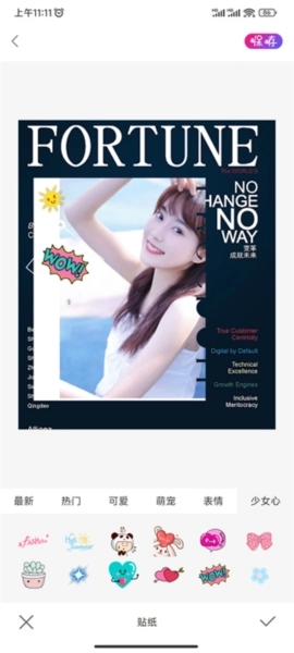 6、要是你希望照片的内容更充实些,不妨挑选自己喜欢的贴纸,这样能让照片呈现出别样的效果;