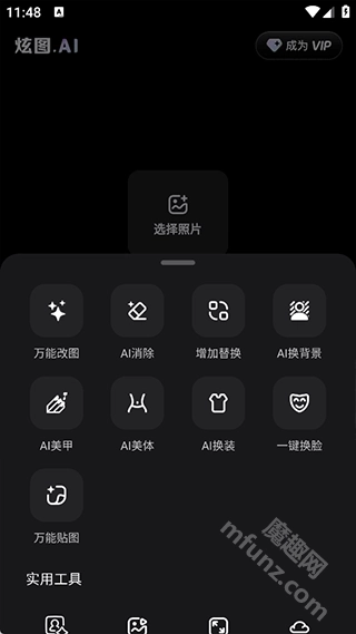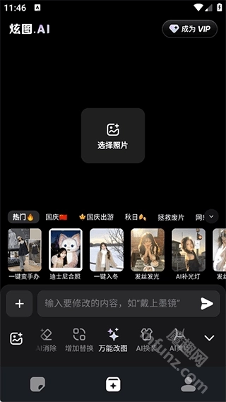 炫图(炫图AI)是一款高端大气的图片智能处理工具。它最受用户青睐的功能有一键AI换装、任意更换背景、新年头像生成、AI智能消除等,不仅功能多样,操作还特别简单,上手毫无难度。只需打开炫图AI软件首页,挑选所需功能,从手机相册导入本地图片,输入具体需求,就能快速完成处理,生成一张全新照片仅需短短几秒!