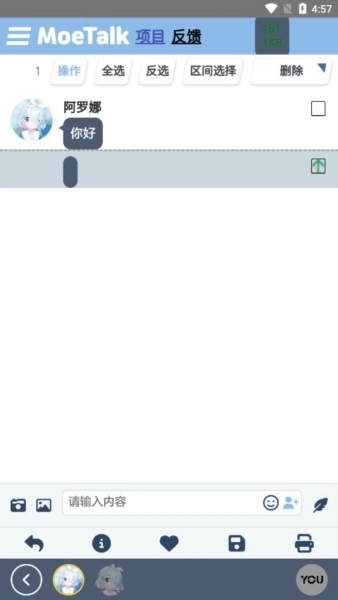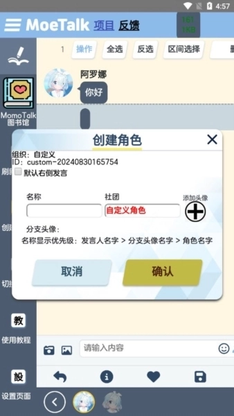分享创作:MoeTalk设有剧情创作功能,用户能依据个人喜好编写并分享故事,以此提升软件的趣味性与互动性。