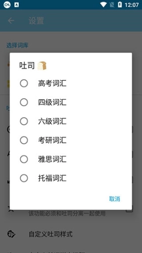 4、点击吐司和桌面小部件,即可选择不同等级的英语词汇。