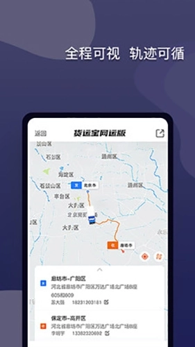 4、物流轨迹实现全程可视化,不仅可以查看对应的起始地点信息,还能在地图上直观呈现全程的运动轨迹;