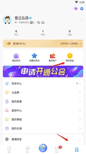 1、启动软件后,点击底部的“我的”选项,接着点击“我的收益”按钮。
