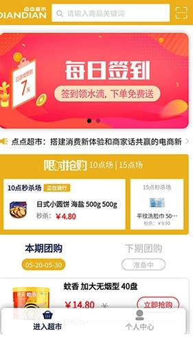 点点超市是河南森润电子商务有限公司打造的掌上超市购物平台,能满足日常生活的各类需求,用户可一站式采购并享受送货上门服务。它就像把线下超市“搬”到了手机里,大家随时都能在手机上轻松选购心仪商品,品质有保障,还常有折扣满减活动,实惠又划算。打开点点超市,就能在手机上直接挑选各类优质好物!