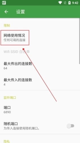 4、接着在“限制”这一栏里,就能找到【网络使用情况】这个选项了。