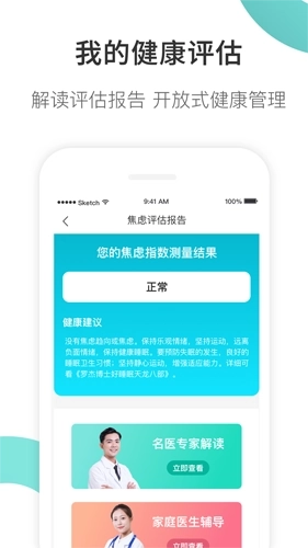 支持在线对血糖、血压、睡眠、心理等方面的健康风险进行评估,获取评估结果,以及与之对应的健康建议和指南。