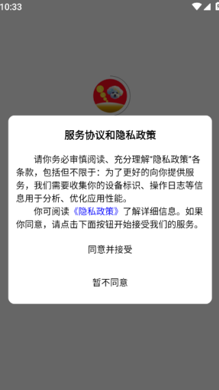 1、请在线阅读服务协议与隐私政策,点击同意并接受后,即可进入应用中心。