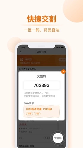 3、借助道农拍平台的快捷交割功能,同一批次货物使用同一个交割码,直达式的货物配送模式为用户提供了便利。