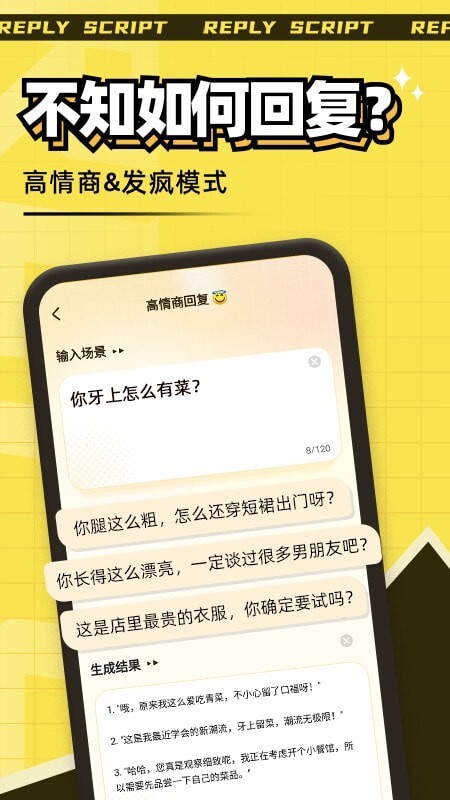 回复话术神器是一款专门为提升沟通效率和质量打造的智能助手类应用。借助人工智能技术,它能够对信息进行分析并生成精准且得体的话术内容,助力用户在各类不同场景中迅速做出恰当的回应。