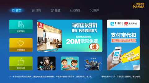 3. 多屏互动:用户能够在手机、平板等各类设备上安装有线电视软件,进而达成多屏互动,无论何时何地都能观看心仪的节目。