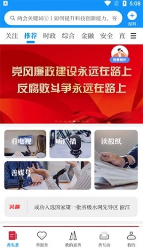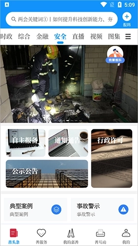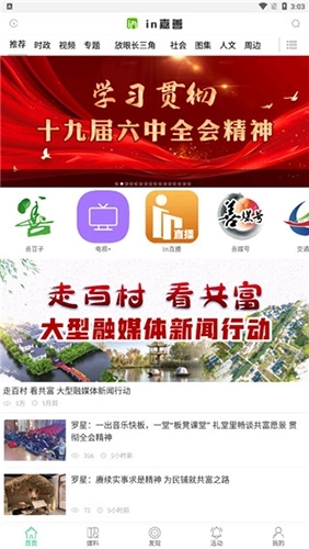 2、进入软件后,我们能看到首页,这里展示着一系列新闻,包括时政、专题、社会、图集等类别。