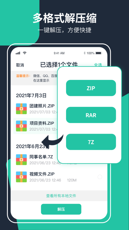极速ZIP解压缩是一款功能强大的ZIP文件解压缩工具,它兼容ZIP、RAR、7Z等多种压缩格式,能让用户快速、便捷地完成压缩文件的解压操作,还可轻松浏览其中的内容。