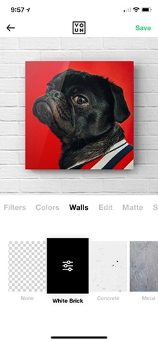 2、在编辑界面就能挑选多种画框样式与滤镜效果,还能选择模拟砖墙、金属板、做旧墙面等风格化背景来呈现不同陈列效果,可根据实际需求对样式进行编辑,完成后保存即可。