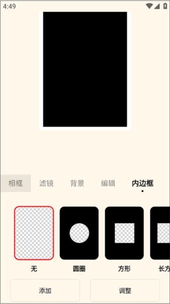 3、选好画框后,点击调节按钮,还能对画框的阴影、尺寸、高光层等参数进行细致调整,使其更贴合你的需求。