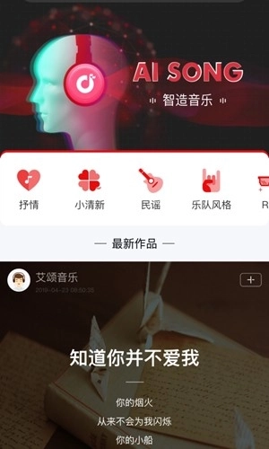 人工智能音乐创作平台,具备智能作词、自动作曲以及原创歌曲自动演唱的功能。
