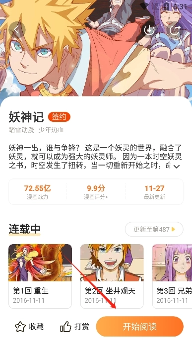 4、点击漫画,然后点击右下角的开始阅读即可迅速加载漫画图片