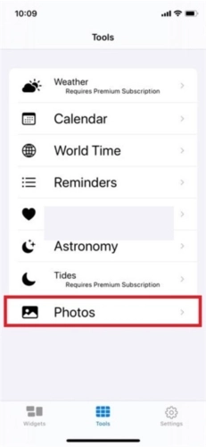 1、我们先打开应用,接着点击下方的Tools选项,之后再选择photos功能。