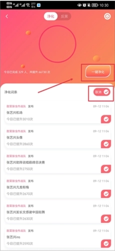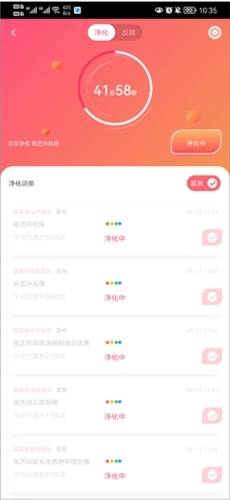 2、进入净化界面后,可点击词条进行净化操作,也可先点击全选按钮,待选择完成后,再点击一键净化按钮即可。