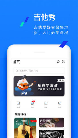 2. 吉他教学课程:为用户提供成体系的吉他学习内容,助力其循序渐进地提升弹奏能力。