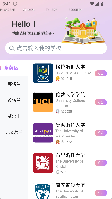 院校社区:按学校分类建立社交圈,涵盖布里斯托大学、格里斯哥大学等多所院校