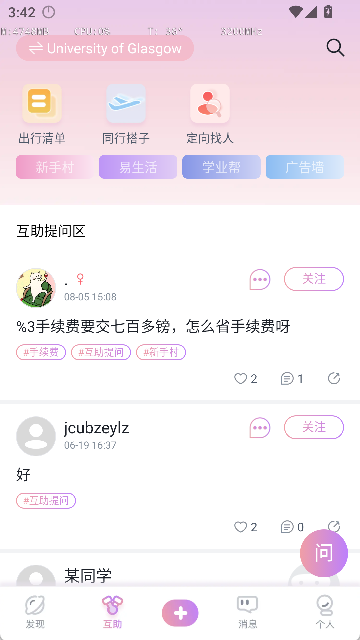 1.搭建按院校划分的社区平台,助力留学生迅速找到同校伙伴与交流圈子