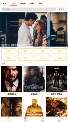 2、设置亚洲、欧美、日韩专区,各类爱情大片一应俱全,满足你的所有期待