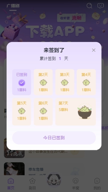 2、成功进入首页之后,我们可以看到丰富的独家榜,热播榜的广播剧资源。