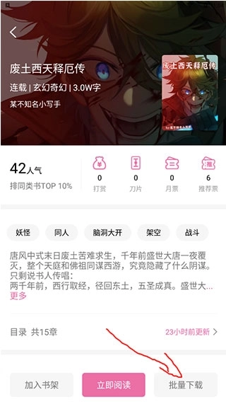 4、如果想要离线阅读的话,可以直接点击批量