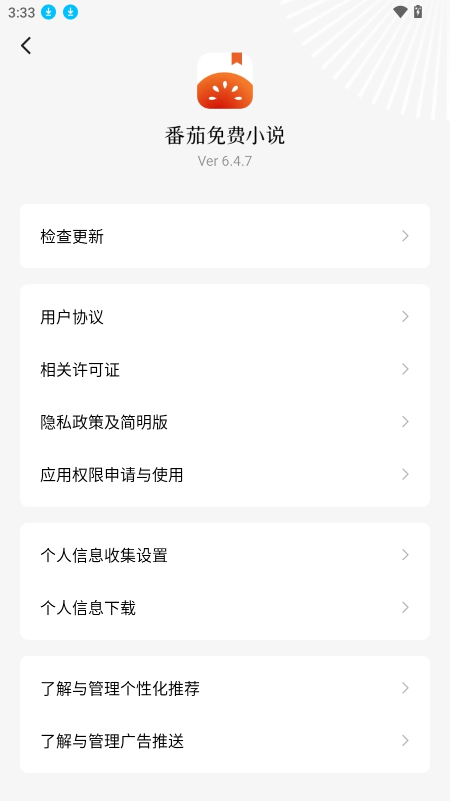 2.找到右上方的设置图标并点击,下滑页面找到关于番茄文字