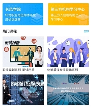 3、长风网专区特色服务:面向特定用户群体推出的专属特色服务板块,涵盖物流认证专区、物流技能竞赛专区、物流研究报告专区、名师课堂专区等内容。