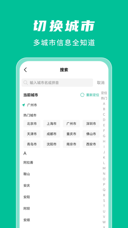 3、切换城市:多城市信息全知道