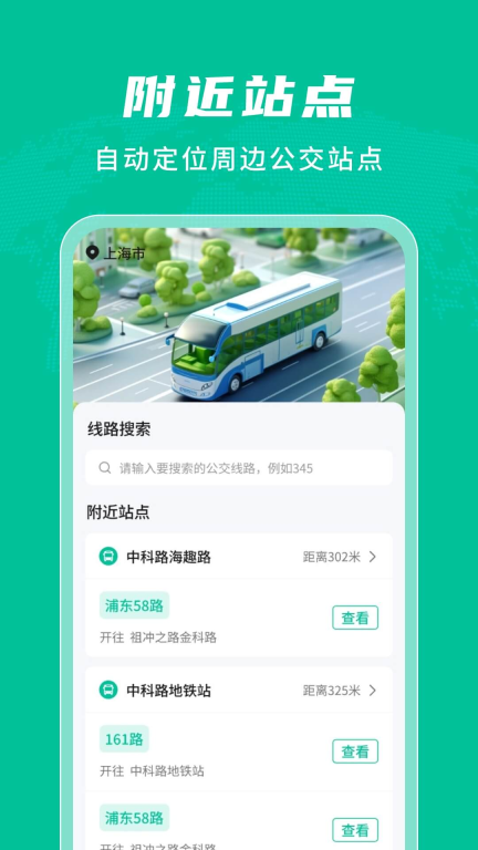 1、附近站点:自动定位周边公交站点