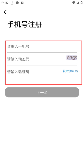 3、进入【手机号注册】页面后,按顺序填写【请输入手机号】和【请输入动态码】这两项内容,先点击【获取验证码】,再点击【下一步】按钮,即可继续推进注册流程。