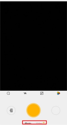 3、点击正中间黄色原型按钮为快门键,点击即可开始拍摄,快门键上方为基础工具栏,从左到右分别是定时拍摄、闪光灯、网格以及滤镜选项
