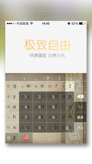 精准高效,当属烨古!烨古输入法,为思想者打造的得力工具!它是目前极为精准高效、兼具优雅与智慧的中文输入法,也是国内一款采用突破性设计、专注于智能移动端,能实现快速、精准、高效文字输入的型码汉字输入法。