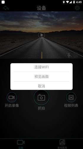 2、可实时查看行车记录仪的当前界面,同时能对设备的录像状态进行控制以及执行拍照操作。