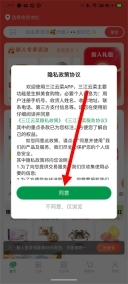 1、打开三江购物,点击隐私政策协议弹窗里的同意。