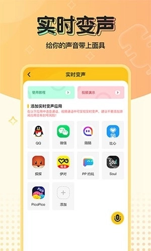 2、接着在变声器页面里,打开或添加你需要进行实时变声的应用。