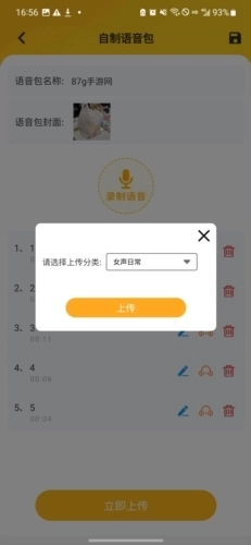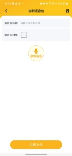 2、在自制语音包页面填写语音包名称并设置语音包封面,接着点击录制语音按钮;