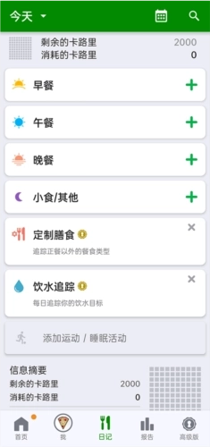 饮食总结日历帮助你纪录你的卡路里的摄取和消耗。