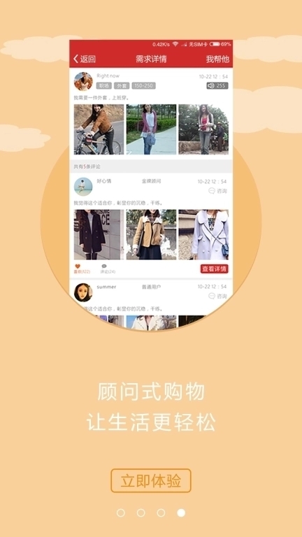 2、提出穿衣方面的需求,专业顾问会用心为你挑选搭配并给出推荐;要是看中了,还能在线体验试穿呢。
