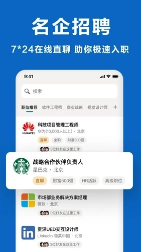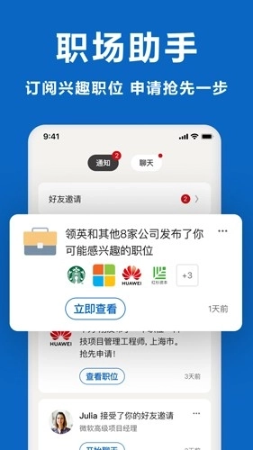 领英职场是北京领音信息技术有限公司全新打造的求职应用。用户在这里能够搜索到全国各地的岗位,众多知名企业均在此发布招聘信息。平台提供大量高薪职位,具备基于地理位置的智能搜索功能,操作简单高效;还能查看最新行业资讯,助力职场人洞悉行业动态、拓展职业路径,轻松把握各类职场机会。此外,平台提供更优质的资源支持,定能满足用户需求。用户可随时筛选心仪工作,同时对比多个职位选项,大幅节省求职时间。