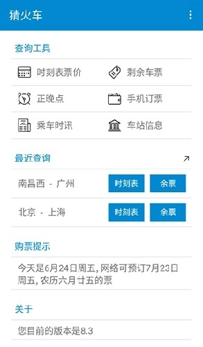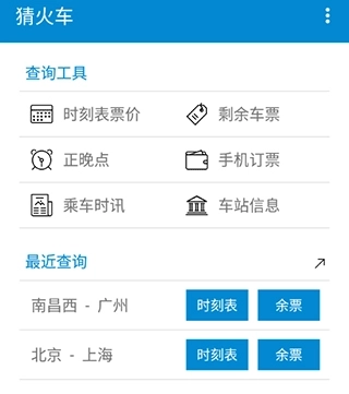 猜火车里关于乘车的各类细节都清晰呈现在大家面前啦,你们可以查询车次,也能查看自己所乘车次的到站时间等信息,用起来相当方便!它不仅能帮你快速掌握火车的时刻表、票价、余票、正晚点等内容,还支持在线订票、验票真伪、寻找车友等功能。猜火车的数据和铁道部实时同步,确保了信息的准确与及时。它操作简单易上手,功能又齐全强大,绝对是出行的得力助手,要是你经常坐火车出行,那猜火车会是个特别实用便捷的软件。
