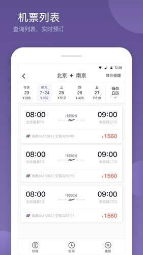 3、【机票预订】汇聚海量优质航班信息,支持机票价格搜索;