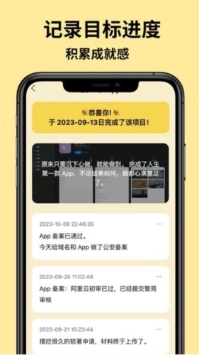 2,记录目标进度:用户可对目标进度进行记录,以此增强自我认同感,对自己已付出的努力给予肯定。