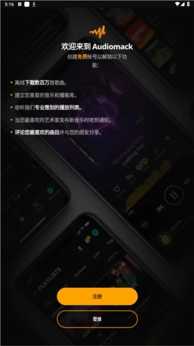 audiomack默认显示语言为中文,无需设置
