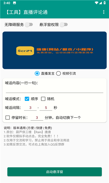 4. 能够协助用户开展模拟人工评论与喊话的操作,同时还向用户提供了悬浮窗显示的功能。